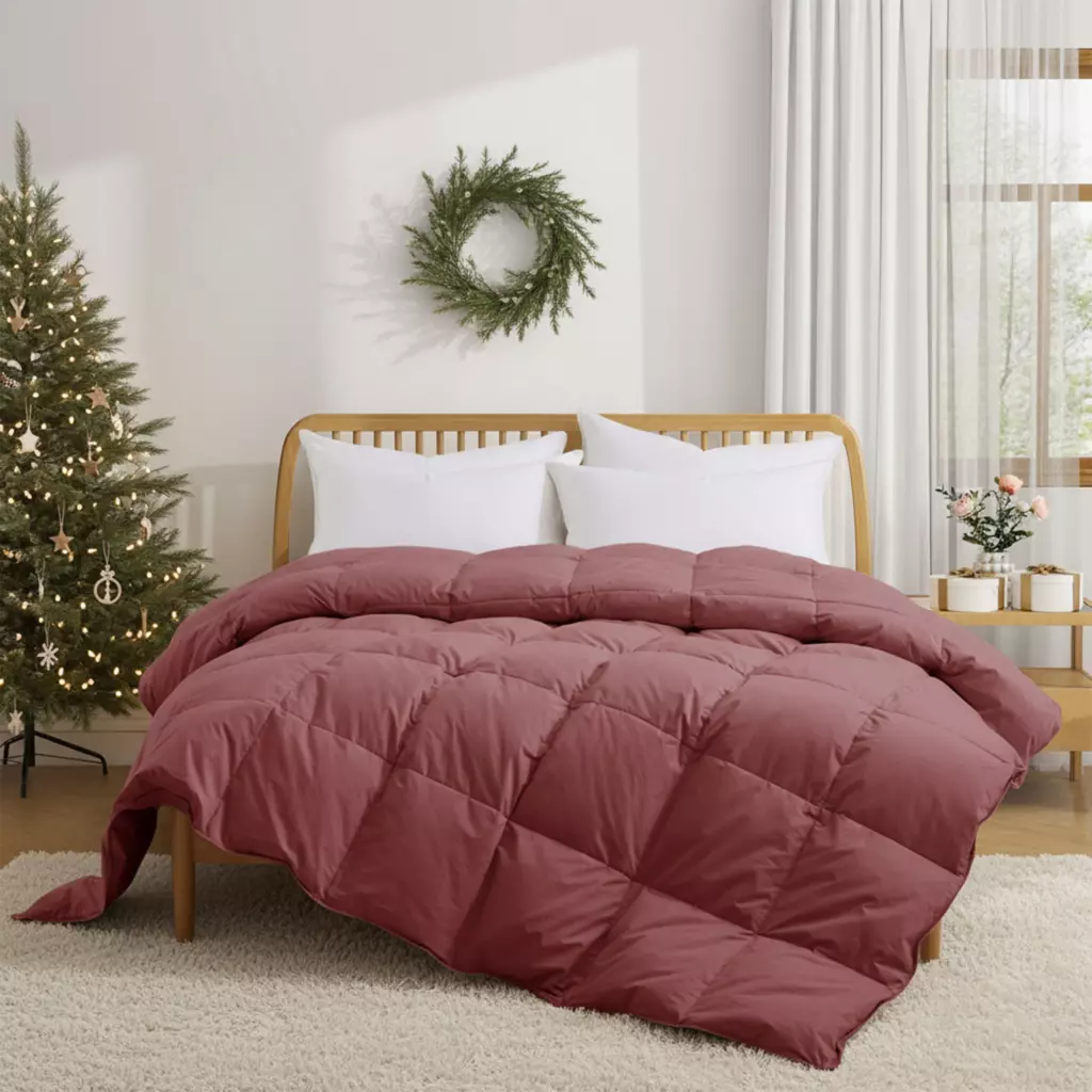 A European design marvel, this organic bed comforter is filled with natural European down and feathers and covered in a 100% GOTS-certified organic cotton fabric, delivering incredible loft and warmth throughout the year. Pair it with a winter down comforter on chilly nights for extra warmth. It is available in three beautiful colors, ideal for the festive season: Brick Red, Coffee Brown, and Off White.